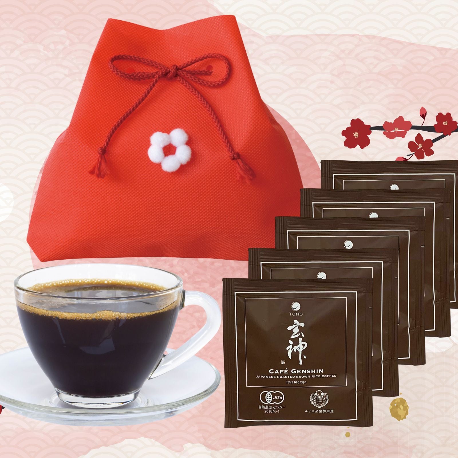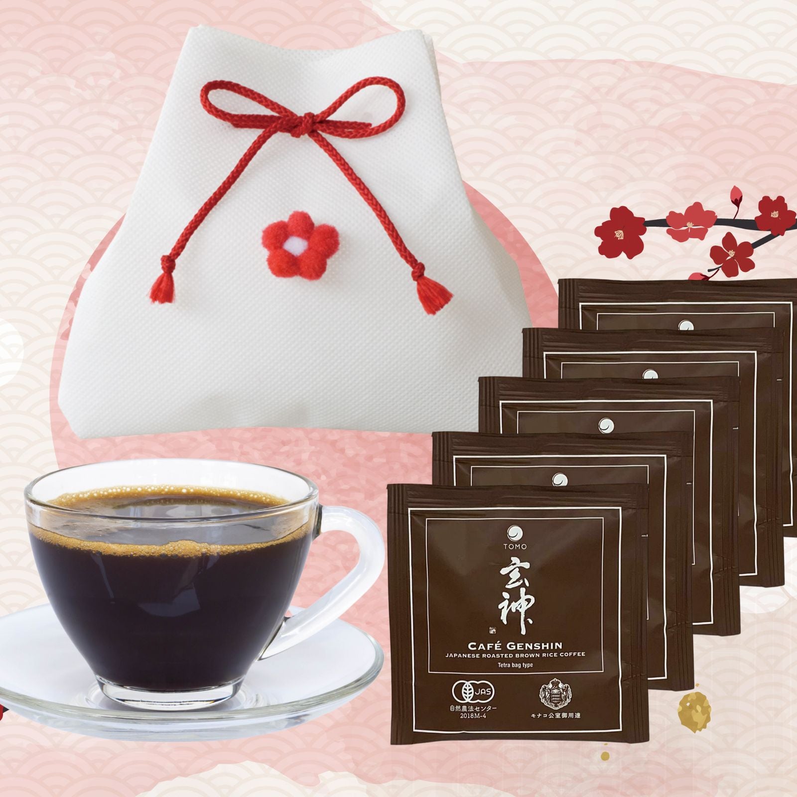 Offer a relaxing time with this cute gift containing 8 tetra bags of Genshin organic premium roasted brown rice coffee and a Japanese message card!